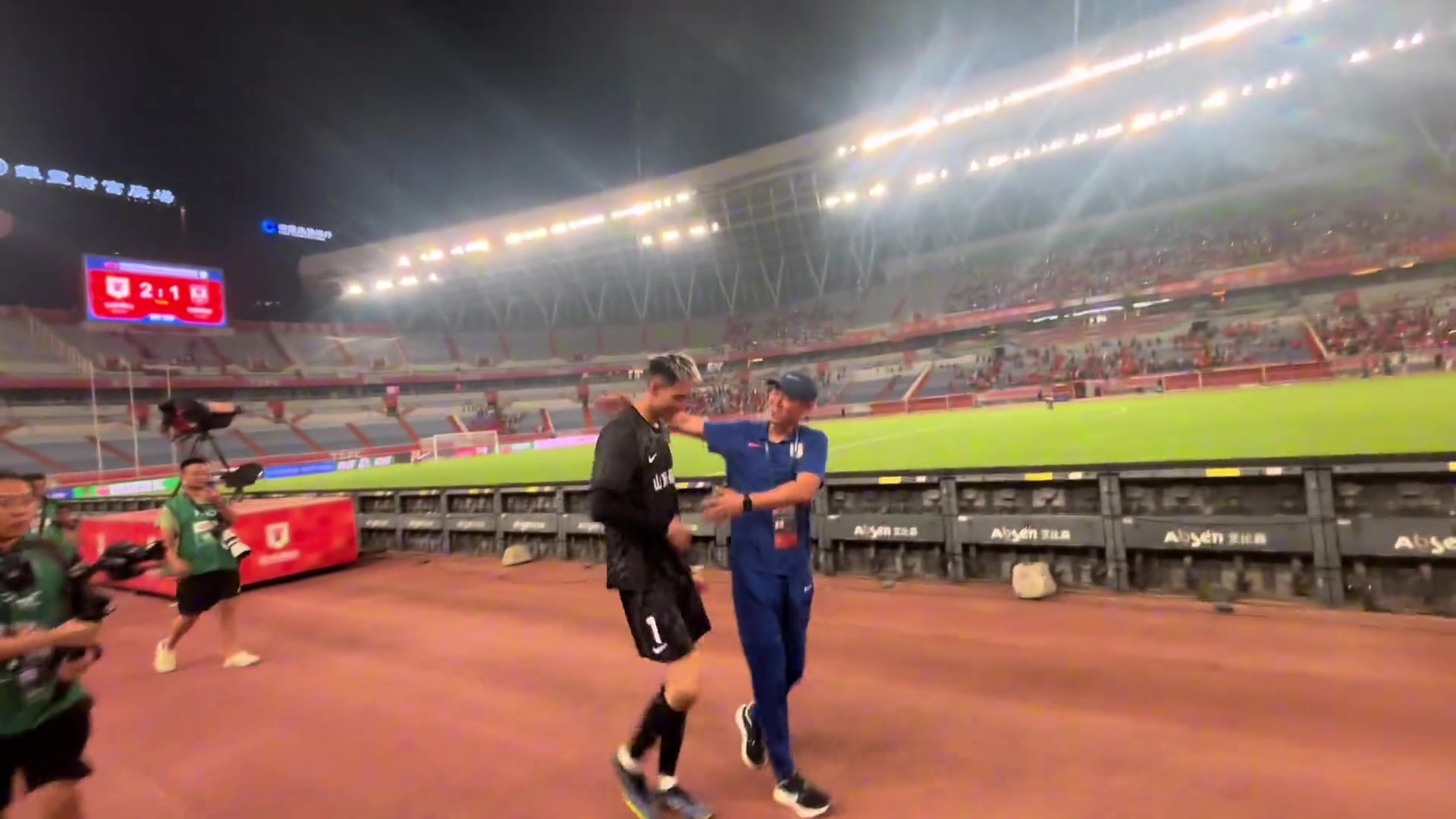 这身高差距有点大啊曾经的泰山队锋霸遇到如今的新生代门将