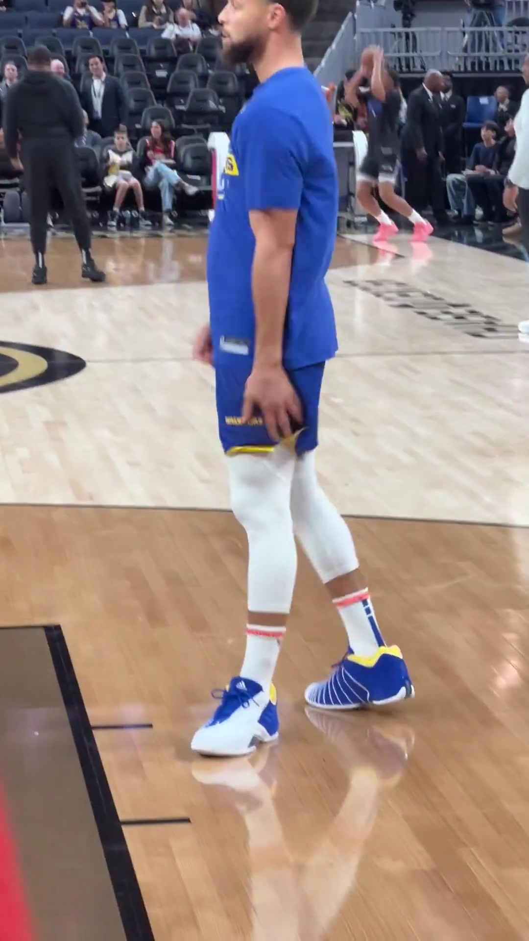 致敬经典库里今日赛前热身上脚麦迪三代战靴