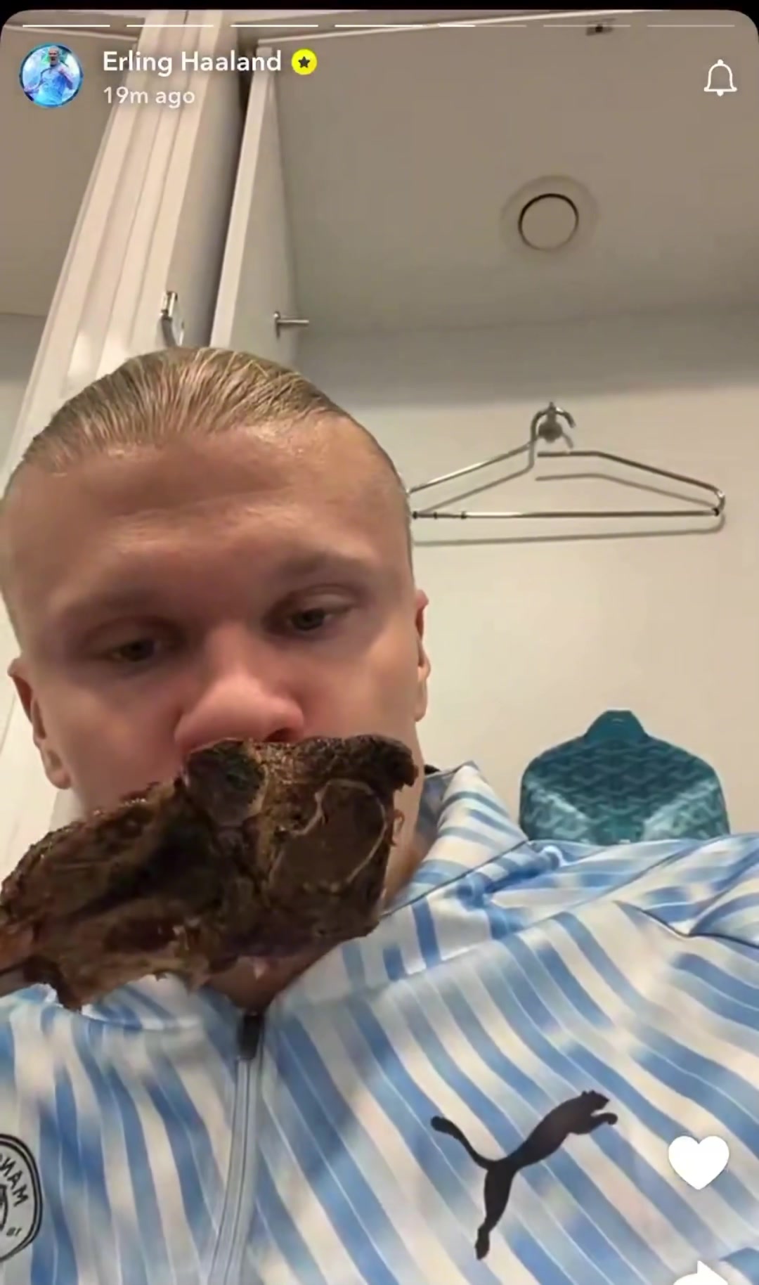两射一传助曼城3-0西汉姆联赛后哈兰德晒更衣室大口吃肉视频