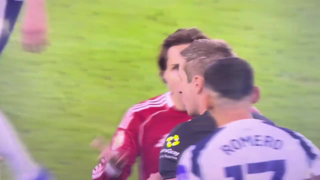 不是红牌基耶萨看到主裁给罗梅罗出示黄牌后惊呆了