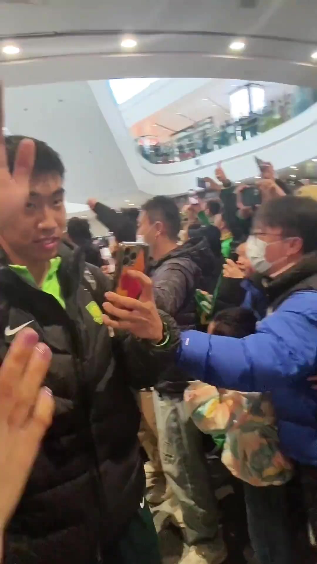 实拍国安全队返回北京国安球迷来到大兴机场高呼NB