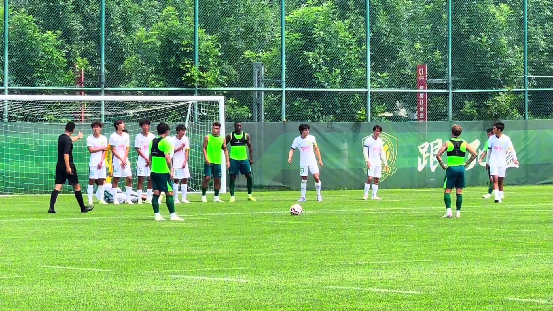国安博主实拍国安一线队与U21队比赛中张稀哲上演任意球破门