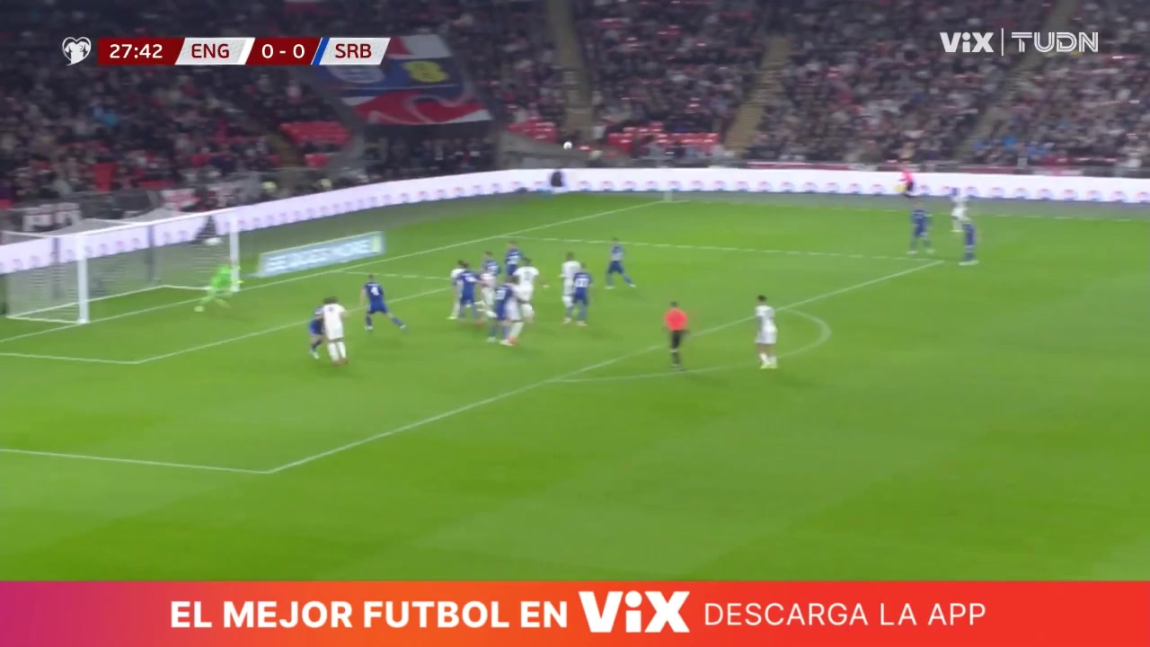 萨卡禁区内不停球精彩凌空斩破门英格兰1-0领先塞尔维亚
